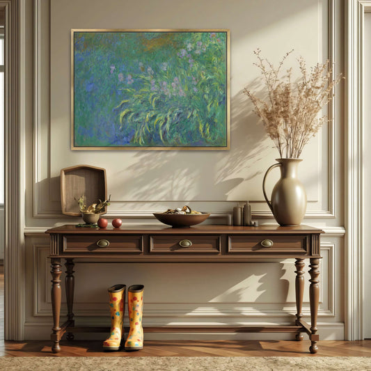 Impressionist Garden Scene With Purple Flowers By Claude Monet