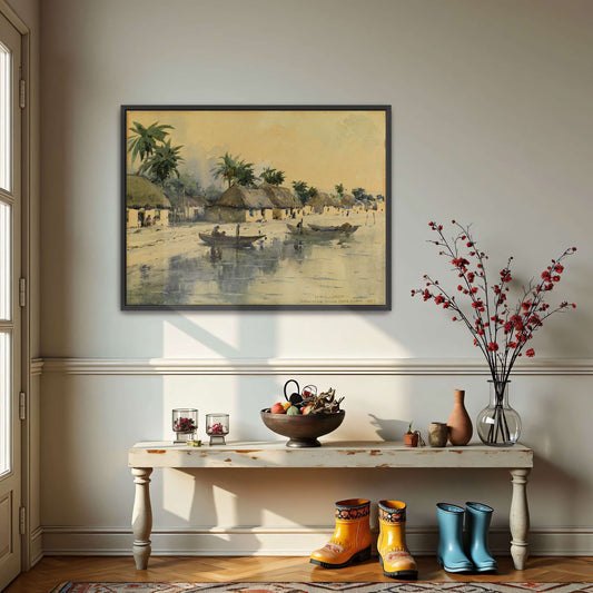 A Watercolor Painting Of A Village On The Coast By William Henry Holmes