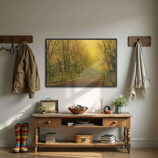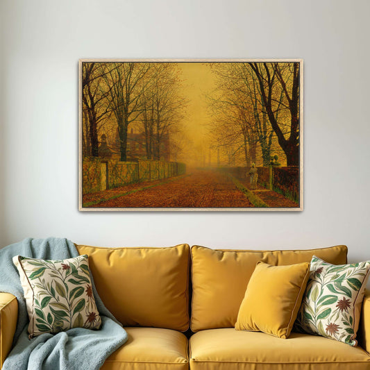 Autumnal Evening Street Scene, Foggy Pathway, Golden Light By John Atkinson Grimshaw