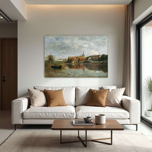 A Pastoral View Of A Cityscape With Rolling Hills And A Distant Church By Stanislas Lépine