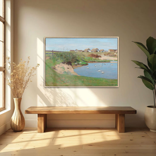 A Pastoral Landscape With Geese And A Woman In The Distance By John Atkinson Grimshaw
