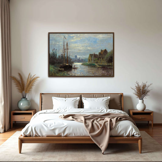 River Landscape With Fisherman And Sailboat By Stanislas Lépine