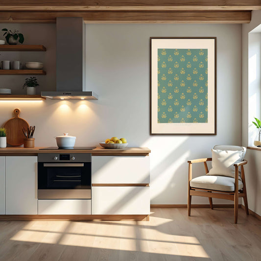 Repeating Pattern Of Fleur-De-Lis On Teal Background By Sydney Vacher