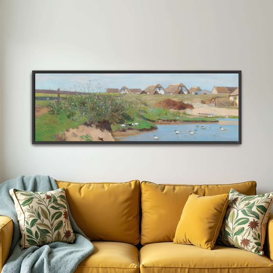 Village Houses By River With Ducks By Eugen Jettel