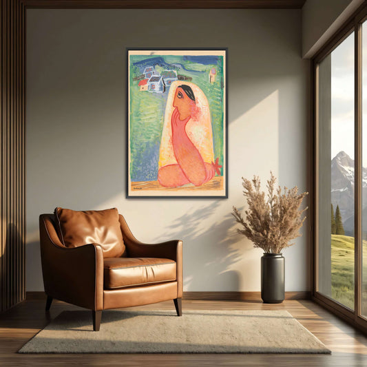 Woman In A Veil, Contemplative, Rural Setting By Mikuláš Galanda
