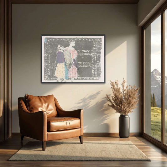 Two Women In A Room With A Red Checkered Curtain By Édouard Vuillard