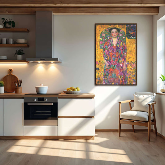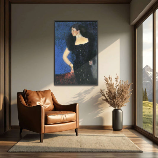 Woman In Black Dress With Patterned Background By Gustav Klimt