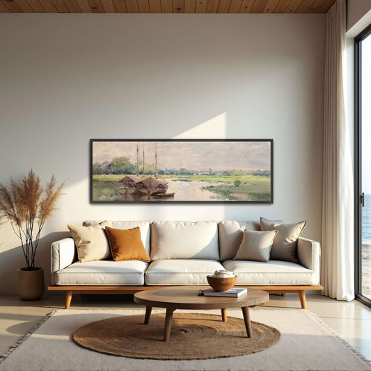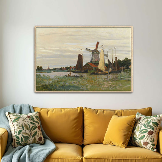 Windmill And Boats By The Canal By Claude Monet