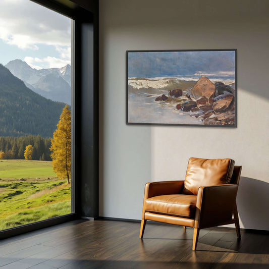Stormy Seascape With Rocky Shore By Karl Hagemeister