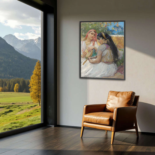 Two Women In Traditional Clothing Playing Music By Frederick Arthur Bridgman