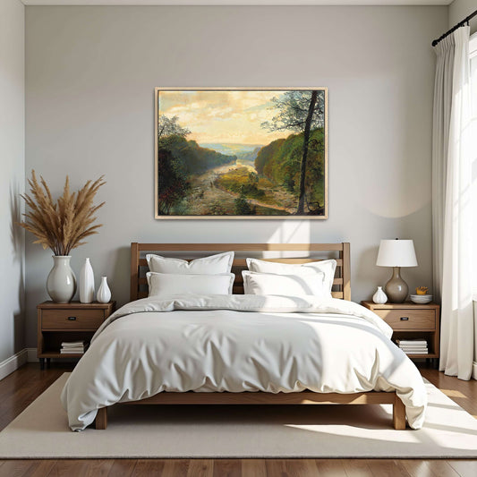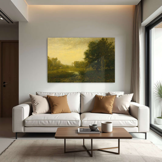 Tranquil River Valley With Lush Greenery And A Golden Sky By John Atkinson Grimshaw