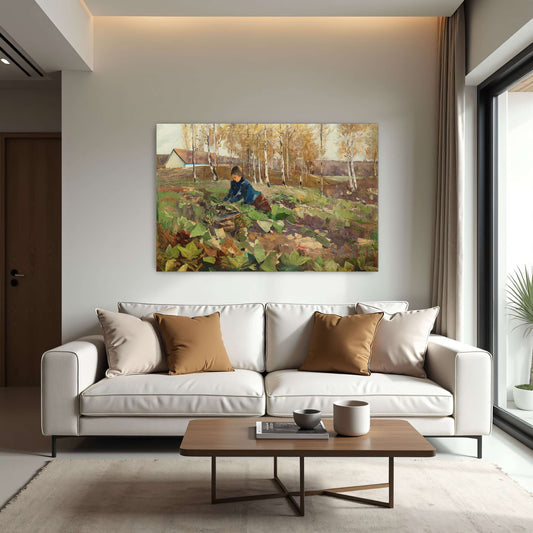 Woman In Field Gathering Harvest By Karl Hagemeister