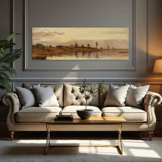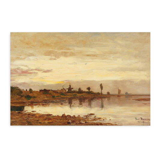 Sunset Over A Dutch Canal With Windmill By Paul Baum