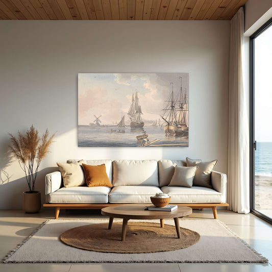 Ships At Anchor In A Harbor With A Windmill By John Cleveley The Younger