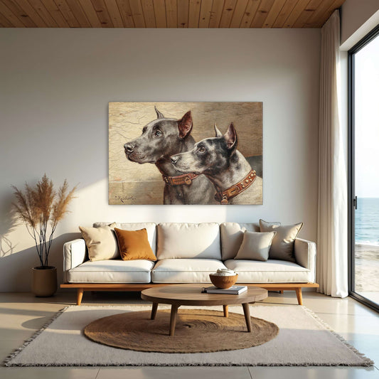 Two Great Danes Portrait, Close Up, Detailed, Realistic By Carl Reichert