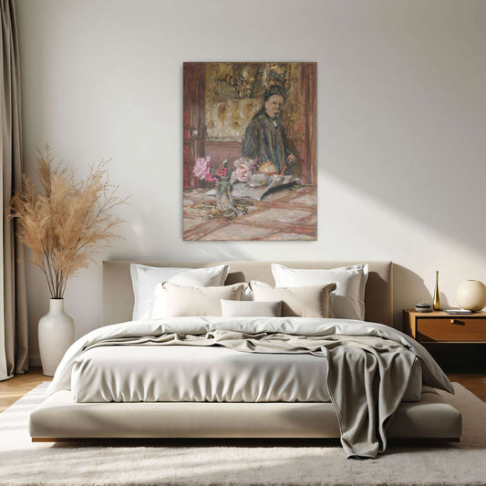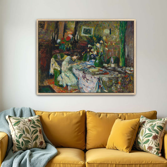 Woman In A Room With Flowers And A Table Setting By Édouard Vuillard