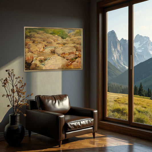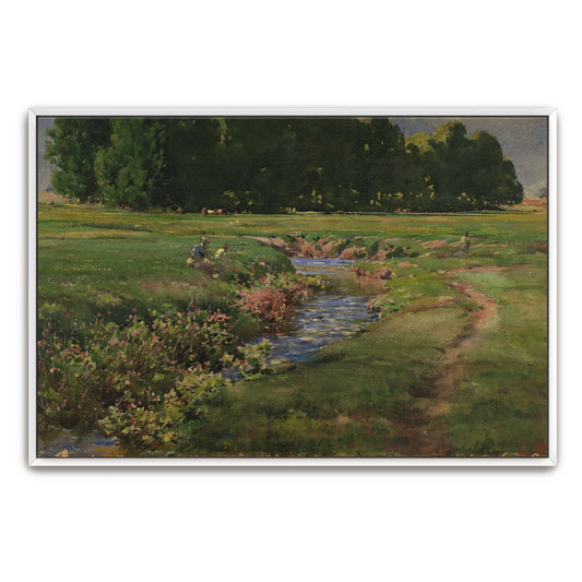 Stream Flows Through Green Field By William Henry Holmes