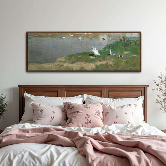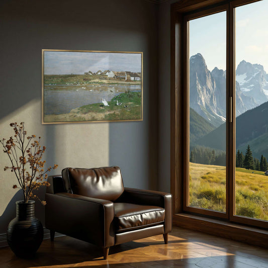Village With Geese On A Lake By Eugen Jettel