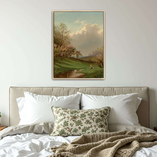 Two Children By A Stream In A Spring Landscape By Alfred Thompson Bricher