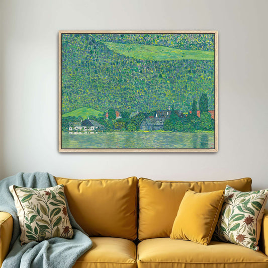 Village By A Lake With Green Hills By Gustav Klimt