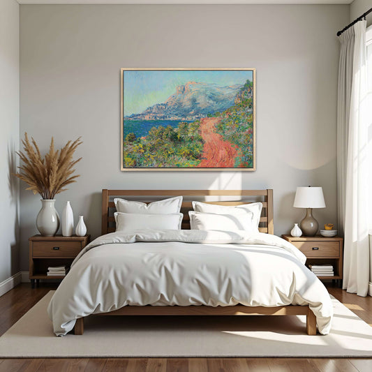 Winding Red Road Through Brush And Mountain Landscape By Claude Monet