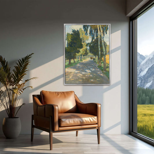Sunlit Road, Trees, Figures By Carl Moll