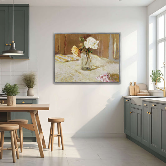 White And Yellow Roses In A Vase By Édouard Vuillard