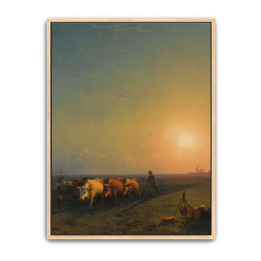 Sunset Landscape With Cows And Farmers By Ivan Konstantinovich Aivazovsky