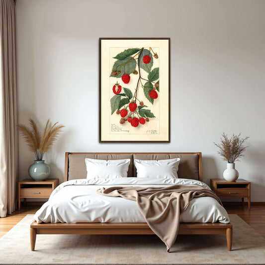 Watercolor Painting Of Raspberries On Branch By Amanda Almira Newton