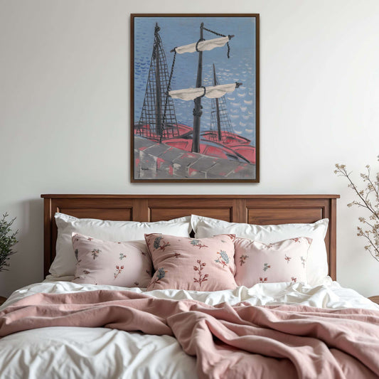 Three Sailboats Docked In A River By William Henry Holmes