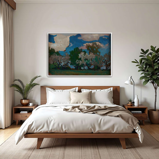 Spring Landscape With Blue Sky And Blooming Trees By Jan Stanislawski
