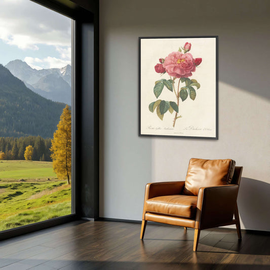 Pink Rose Botanical Illustration By Pierre Joseph Redouté