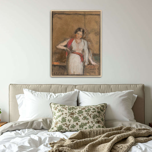 Woman In White Dress And Red Scarf, Portrait, Half-Length, Indoor Setting By Édouard Vuillard