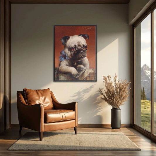 Portrait Of A Pug With A Blue Bow By Carl Reichert