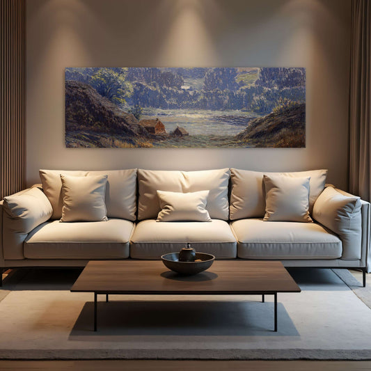 German Village Landscape, Cloudy Sky, Hills, Buildings, Trees By Adolf Hölzel