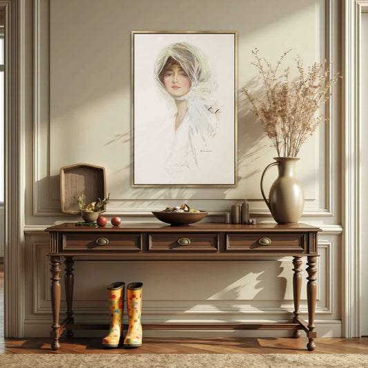 Woman In A White Veil, Seated By Frederick Arthur Bridgman