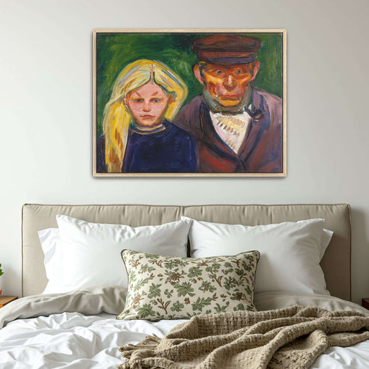 Fisherman And Young Girl Portrait, Worried Expression, Moody Colors By Edvard Munch
