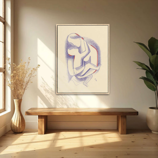 Mother And Child Embrace, Abstract Forms, Red And Gray By Mikuláš Galanda