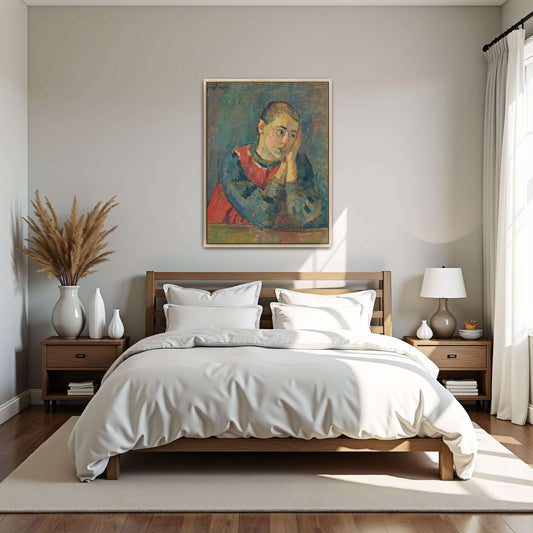 Woman In Red And Blue With Hand On Chin By Alexej Von Jawlensky
