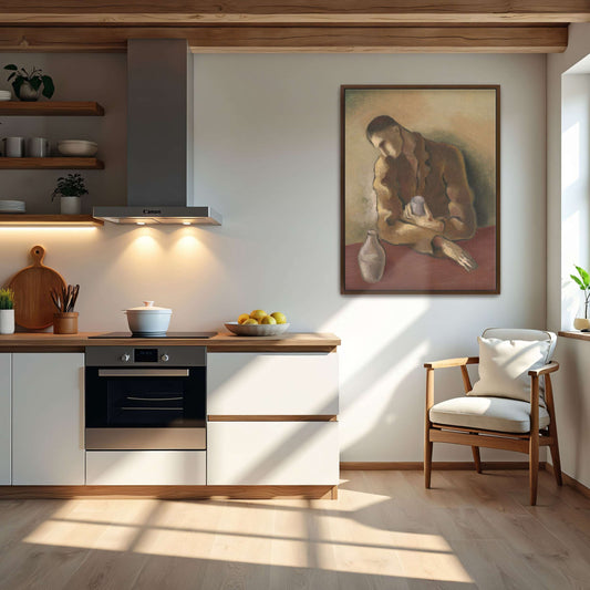 Man With Glass And Bottle, Melancholy Figure, Gloomy Interior By Mikuláš Galanda