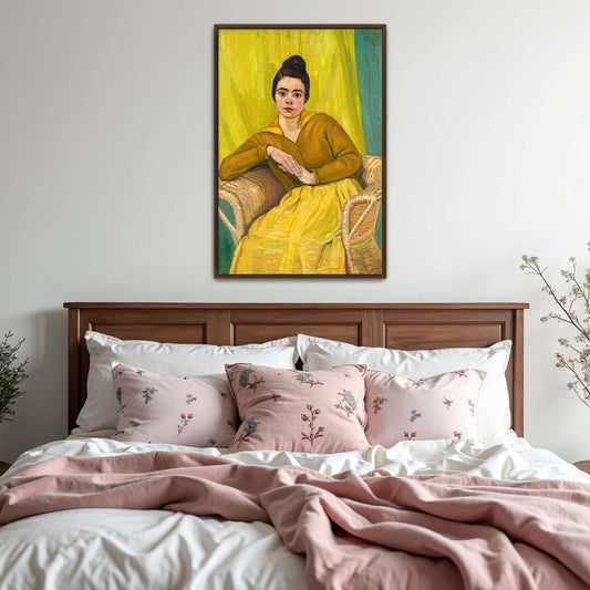 Woman In Yellow Dress, Wicker Chair By Koloman Moser