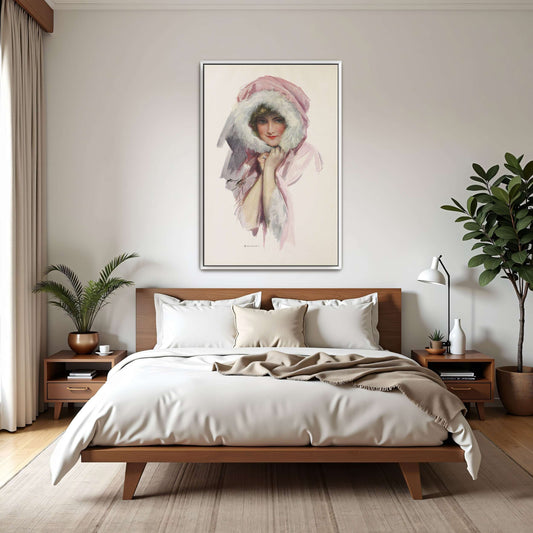 Woman In Pink Fur Hood, Romantic Portrait, Winter Fashion By Harrison Fisher