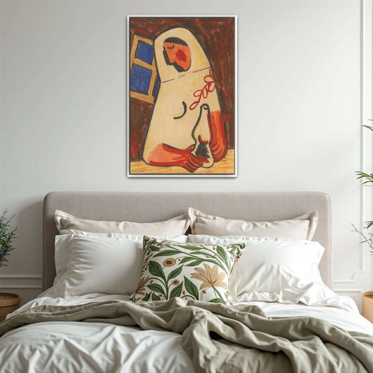 Woman In White Holding A Lamp, Red And Yellow Tones By Mikuláš Galanda