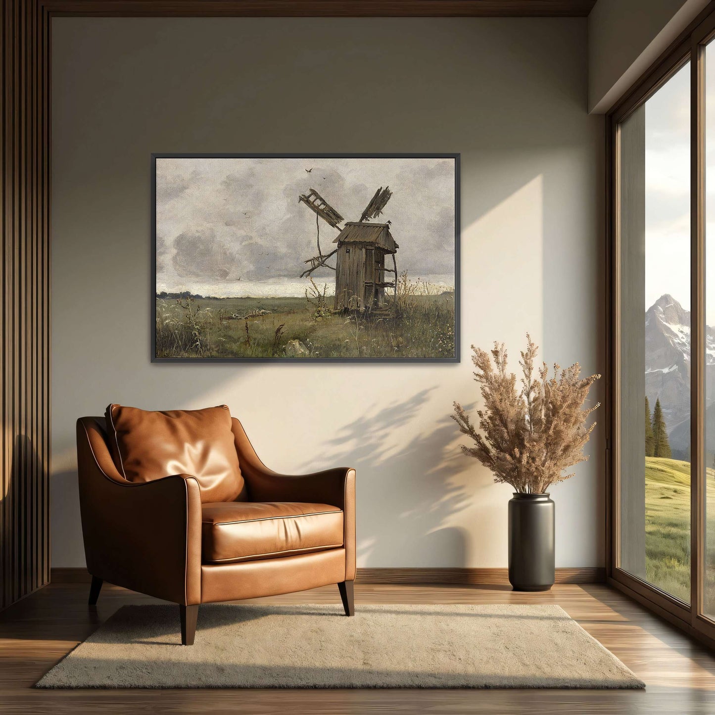 A Dilapidated Windmill In A Field By Jan Stanislawski