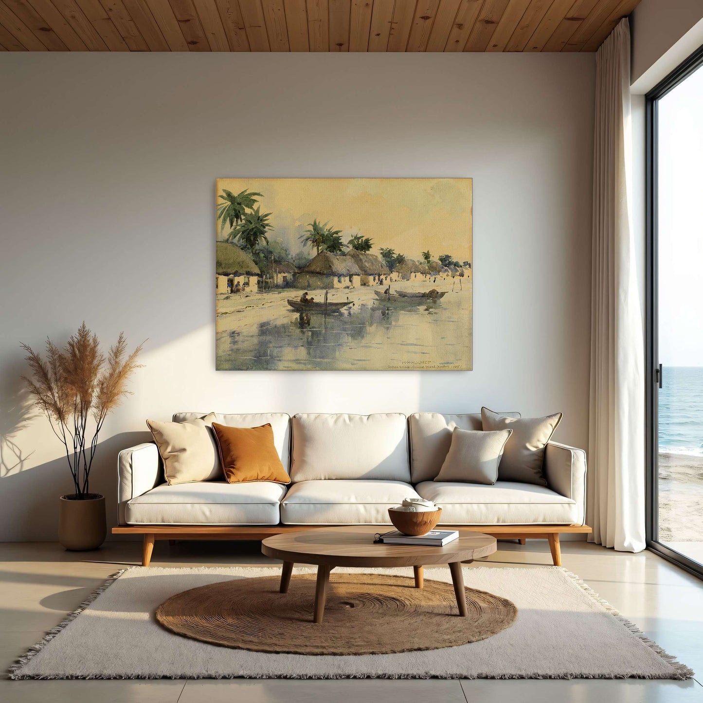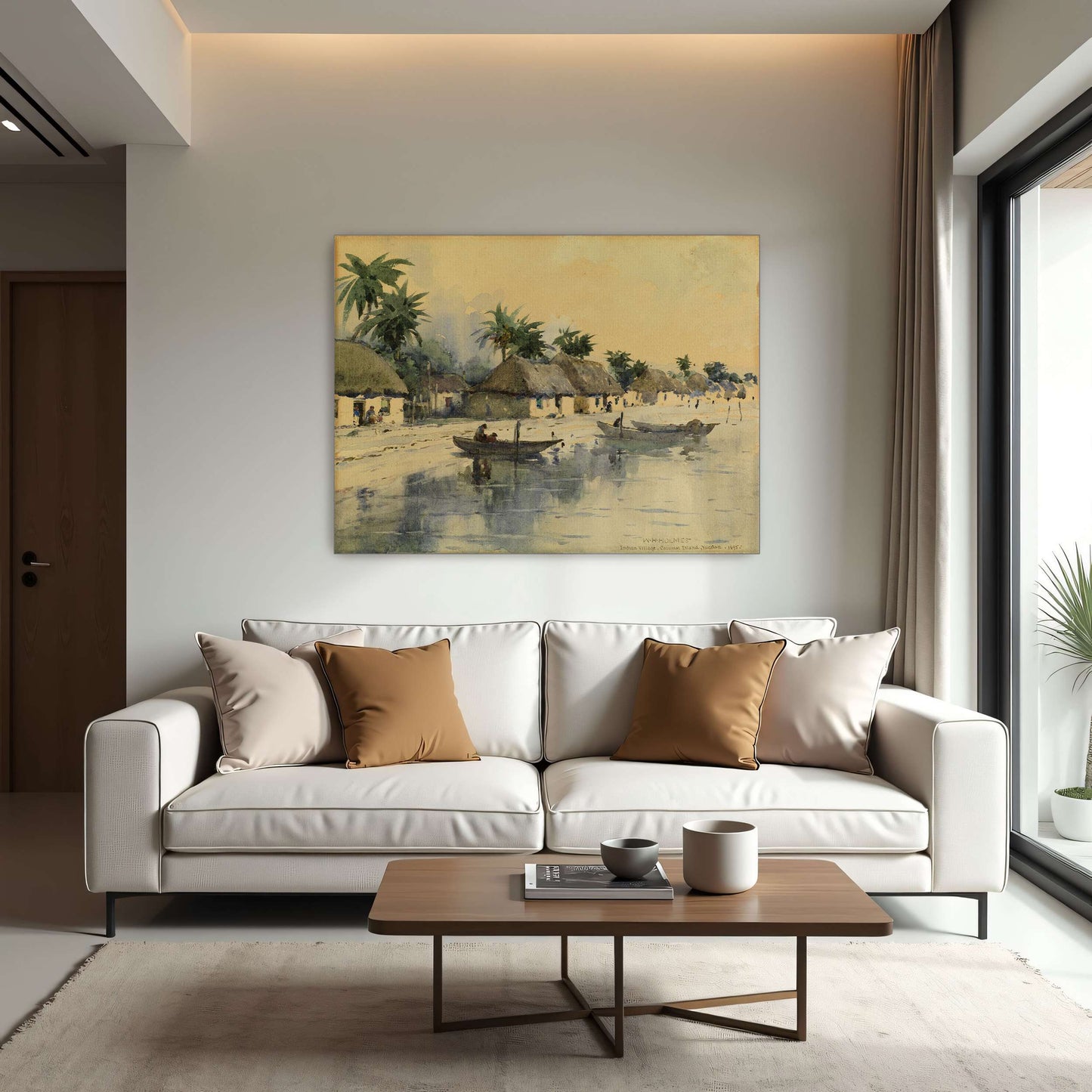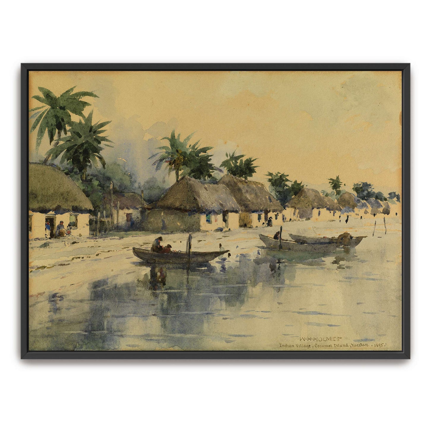 A Watercolor Painting Of A Village On The Coast By William Henry Holmes