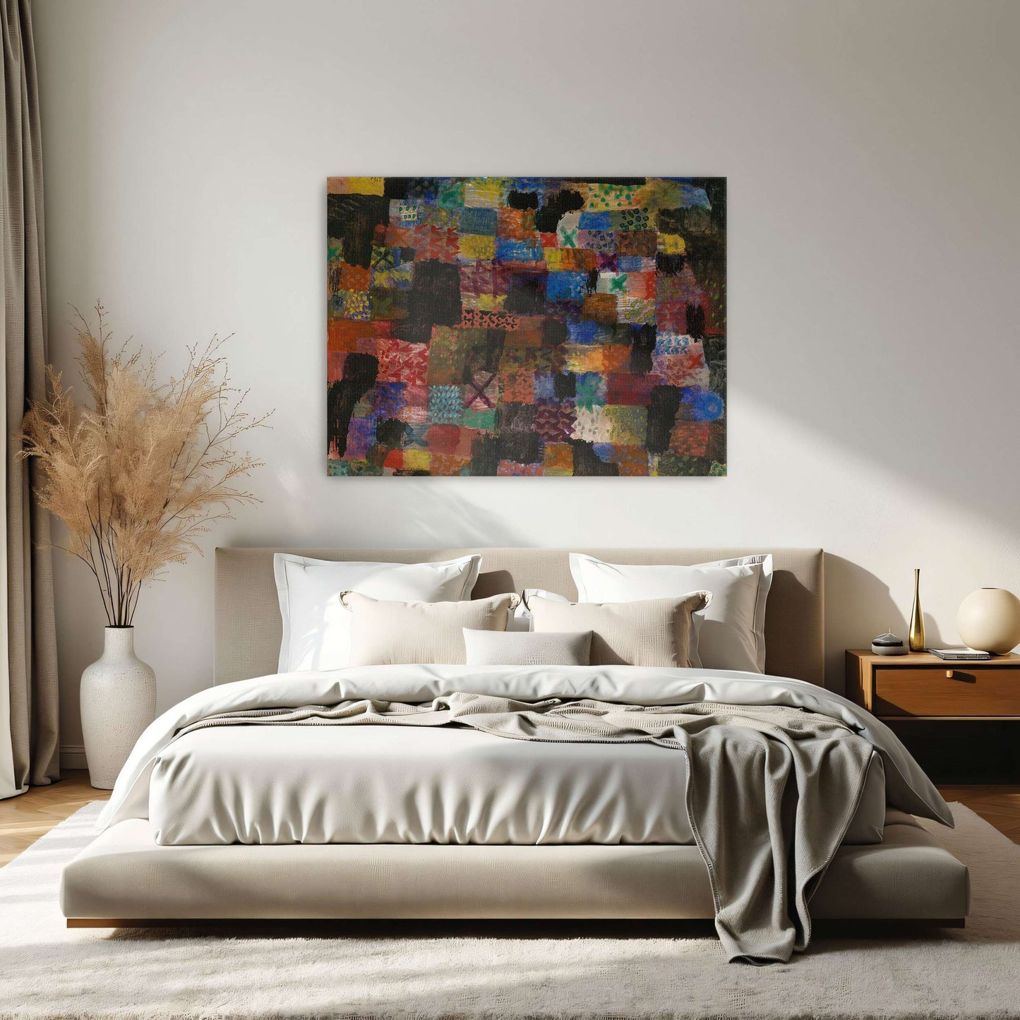 Abstract Geometric Composition With Black And Colorful Patches By Paul Klee
