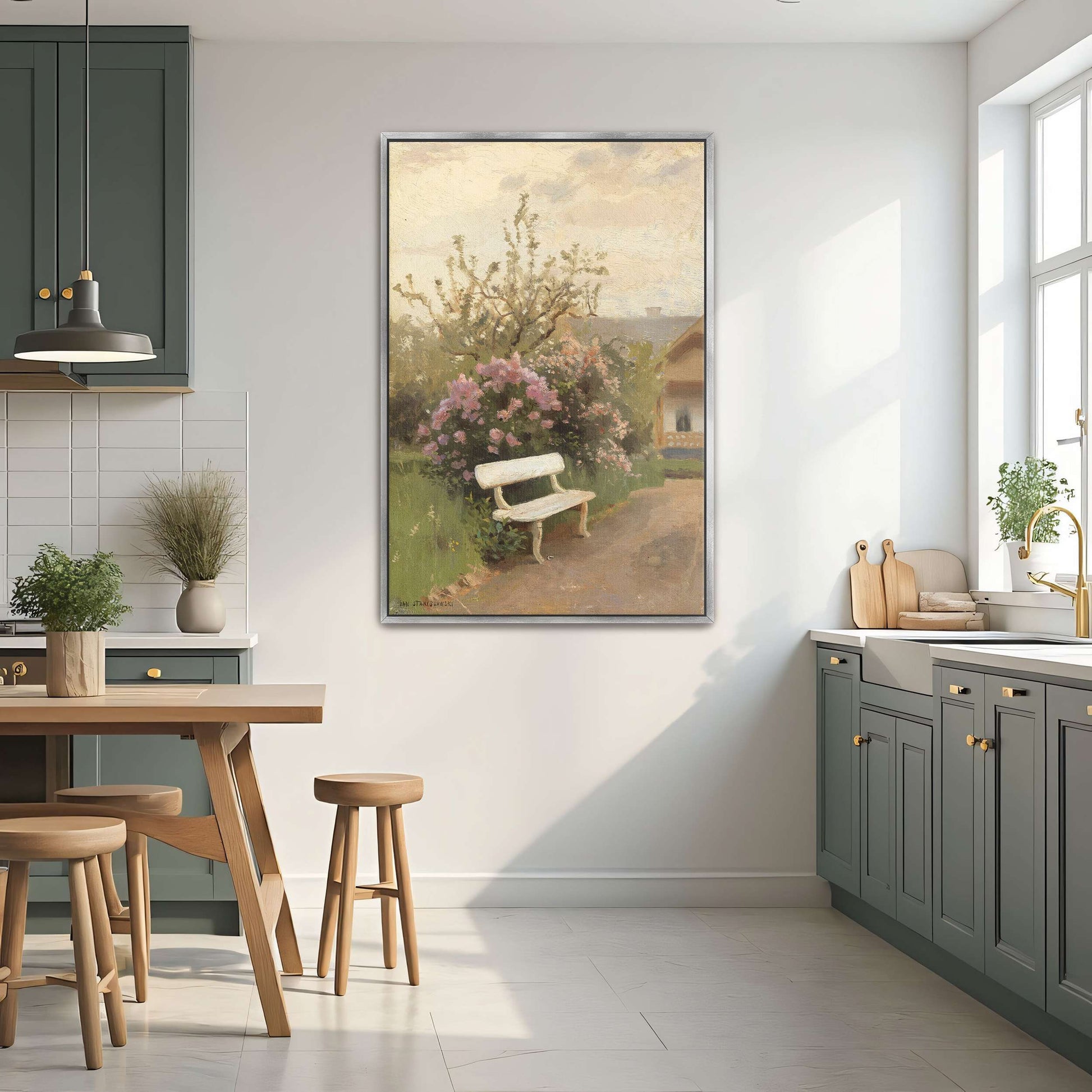 Garden Bench With Flowers In A Sunny Landscape By Jan Stanislawski