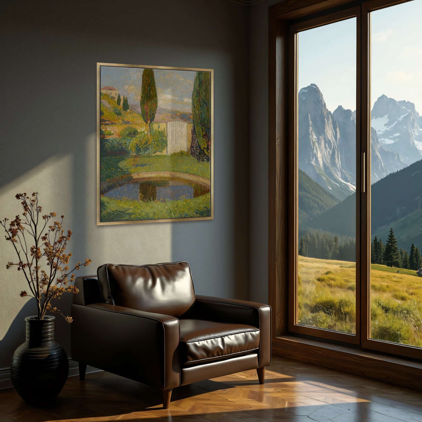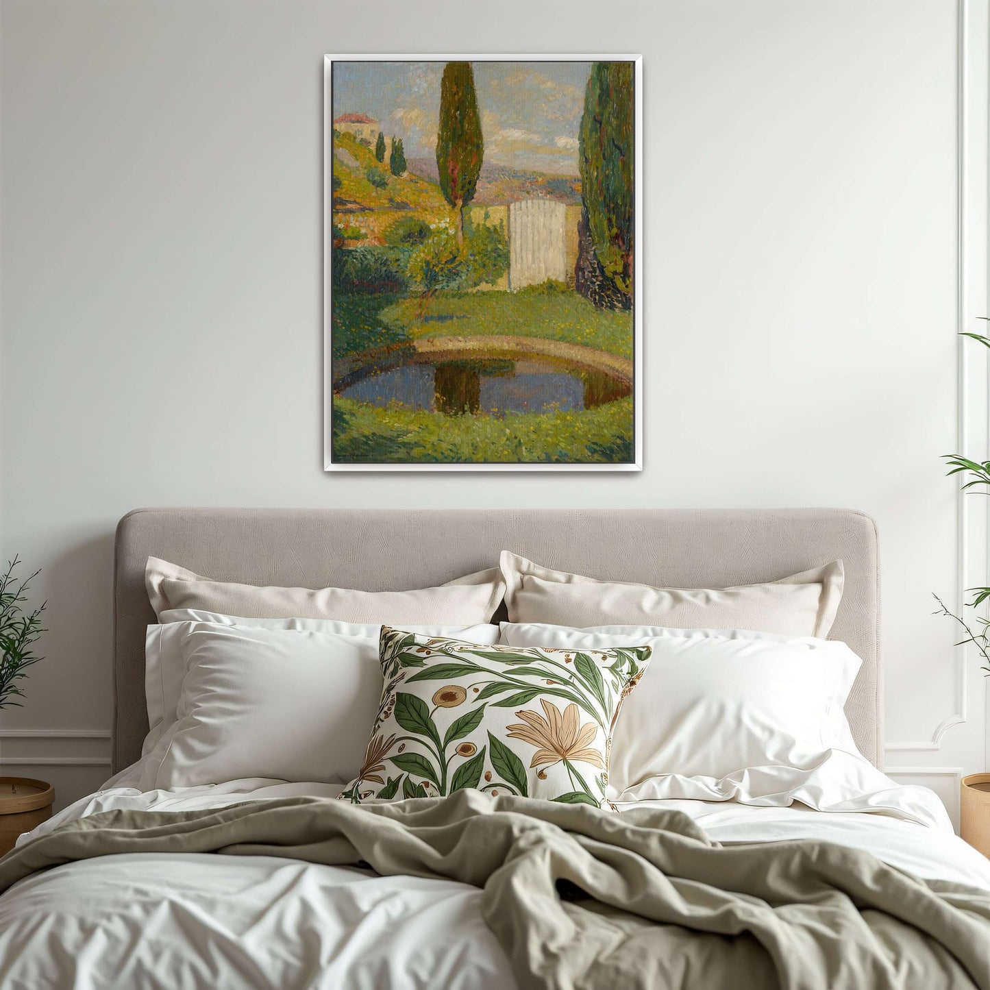 Garden Pond With Cypress Trees And White Fence By Henri Martin