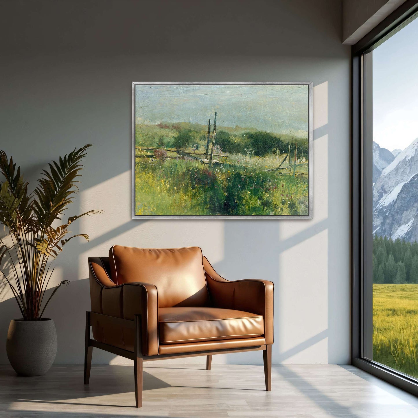 Green Field With Fence And Distant Hills By Johann Till The Younger