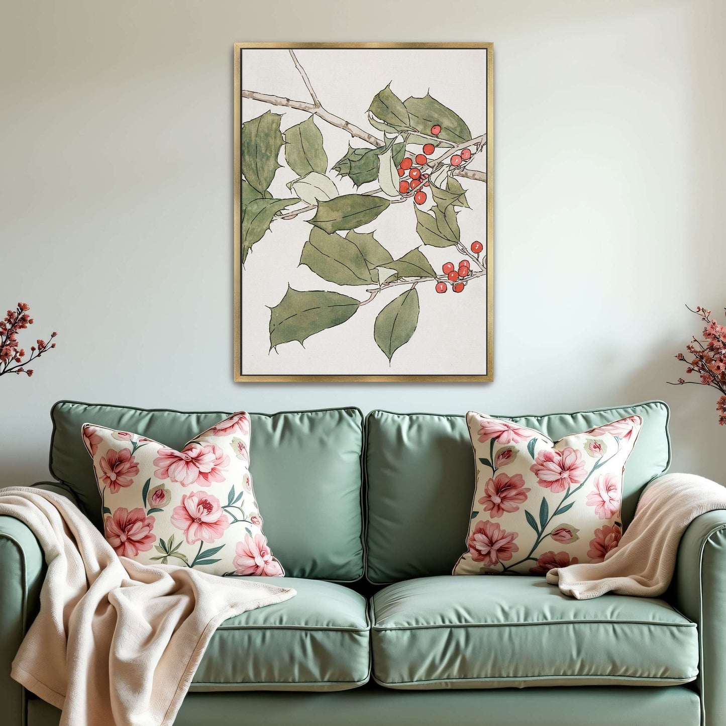 Holly Branch With Red Berries By Hannah Borger Overbeck